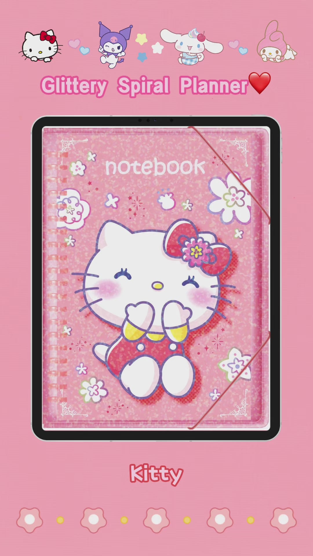 Glittery Spiral Sanrio Character Digital Planner,hellokitty,kuromi,cinnamoroll,melody, Hyperlinked Goodnotes & Notability Journal